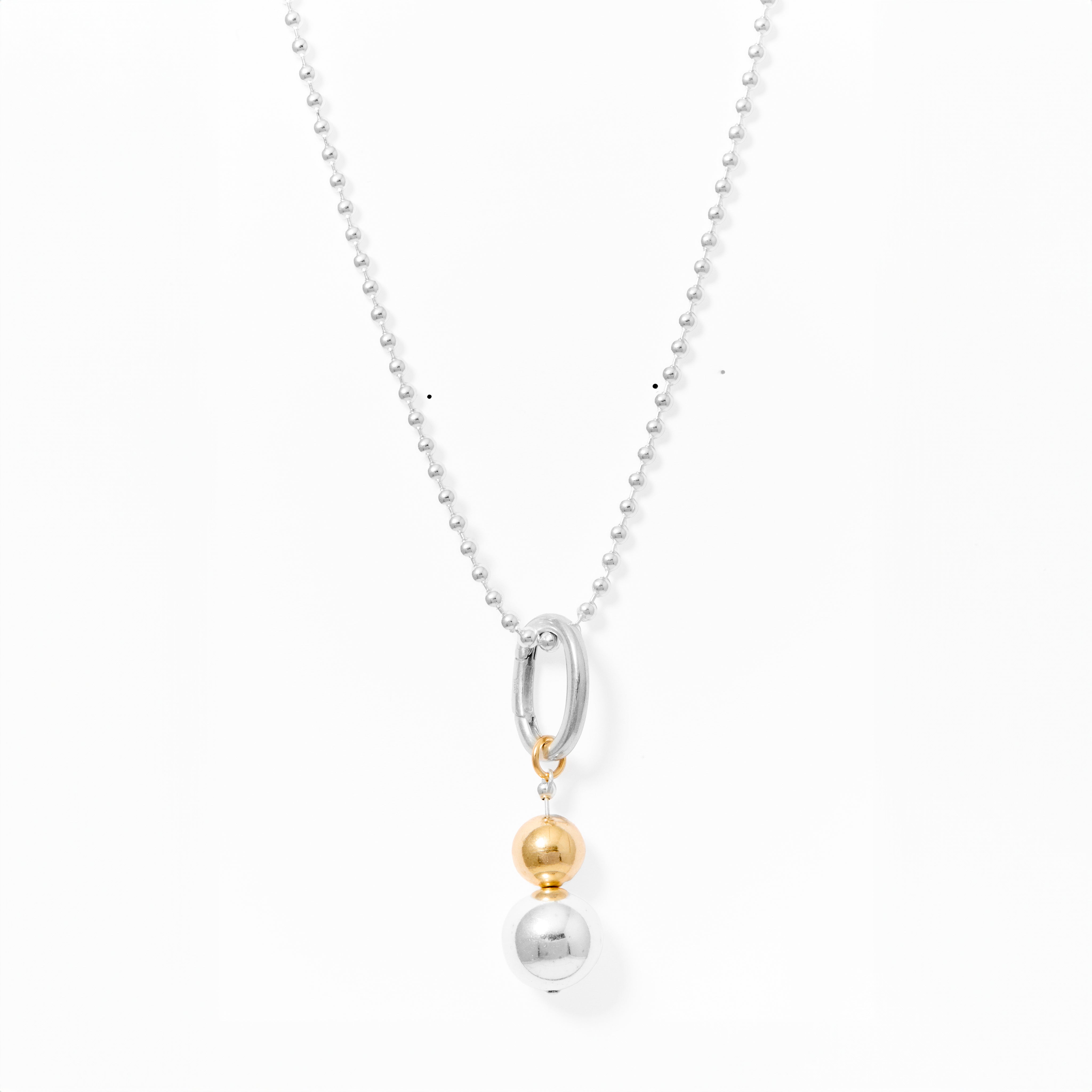 Confidence meets creativity. A stack of sterling silver and gold spheres—our Be Bold Pendant—swings from our signature silver chain designed for endless versatility. Wear it long, doubled, or knotted to suit your look, or personalize the Infinity Link with more charms and baubles.