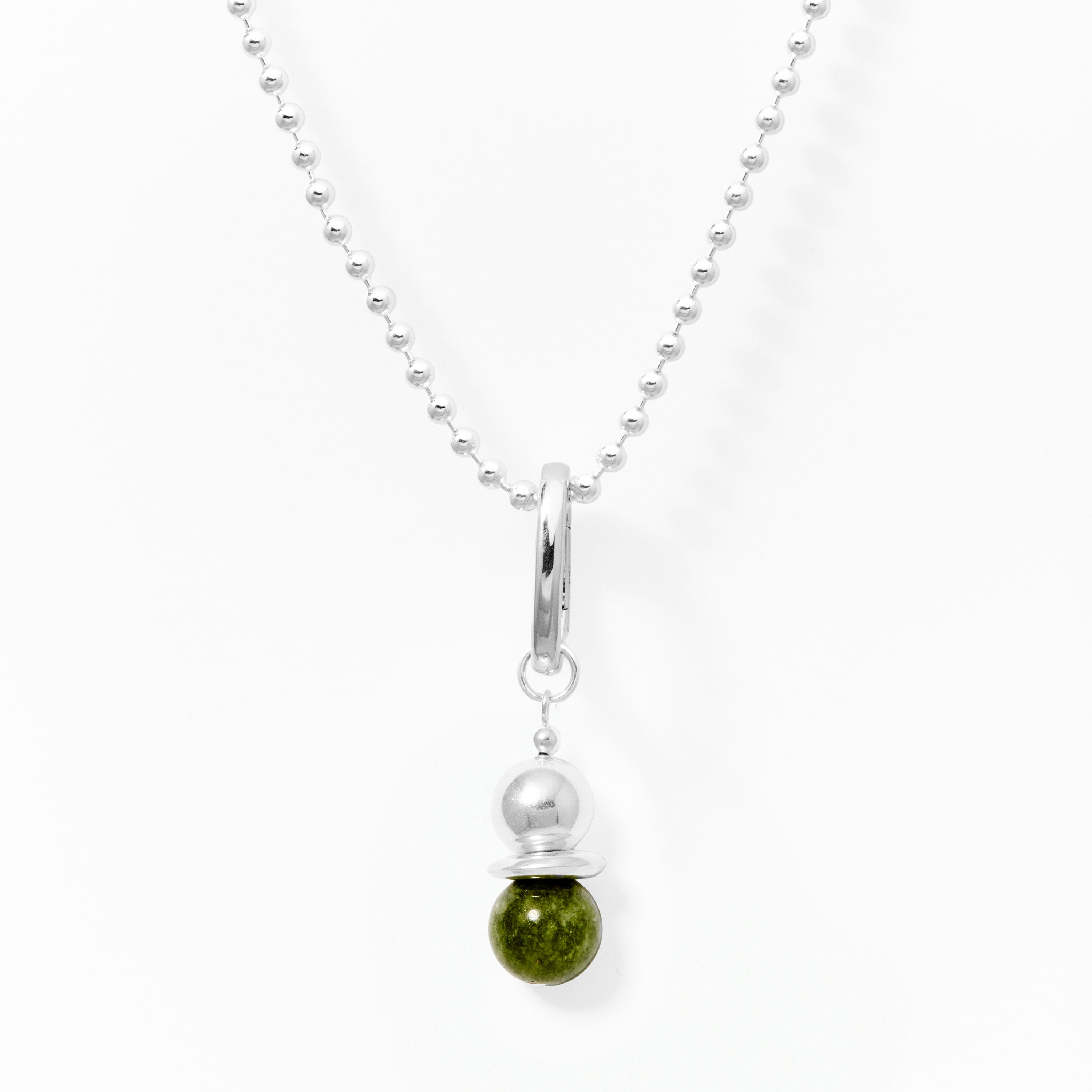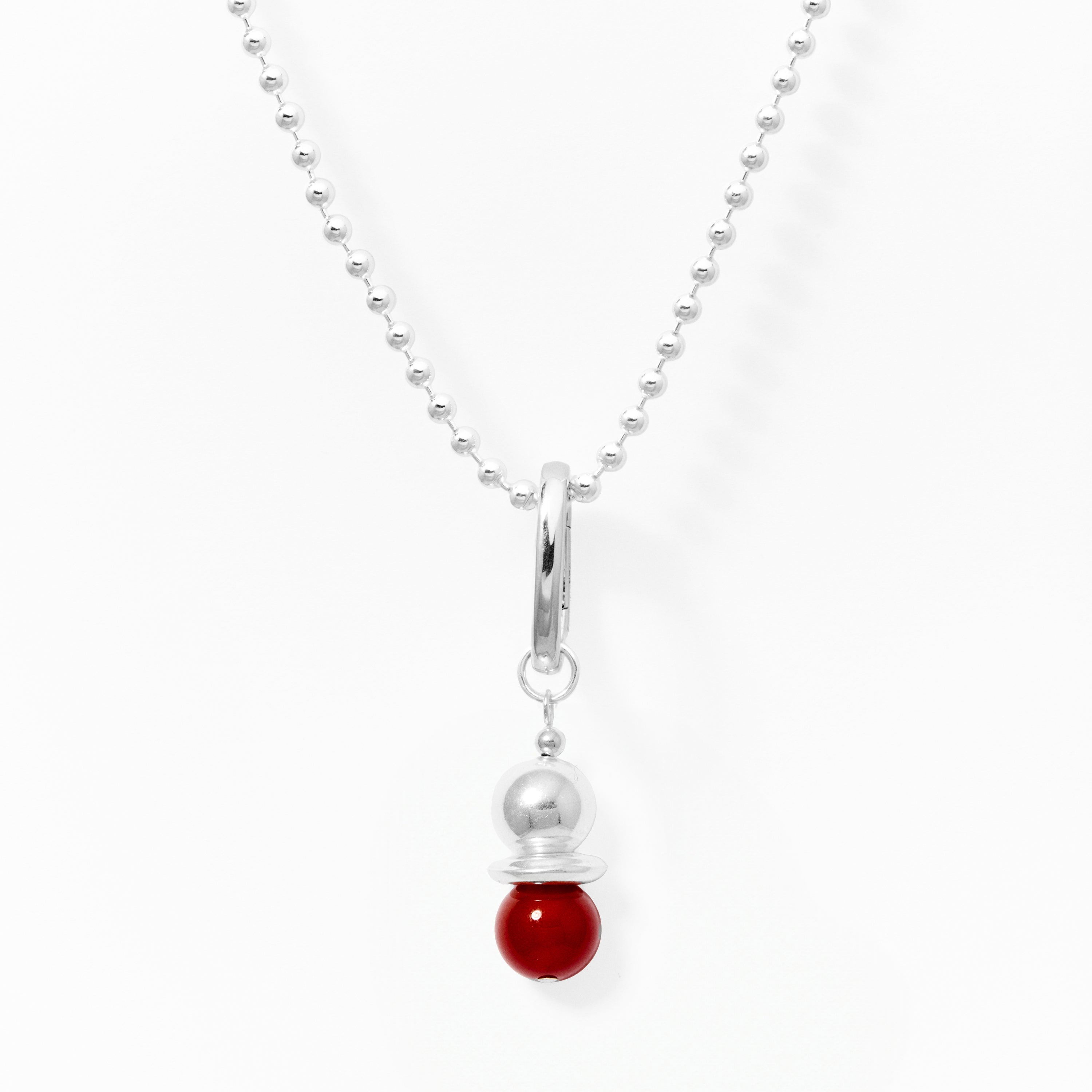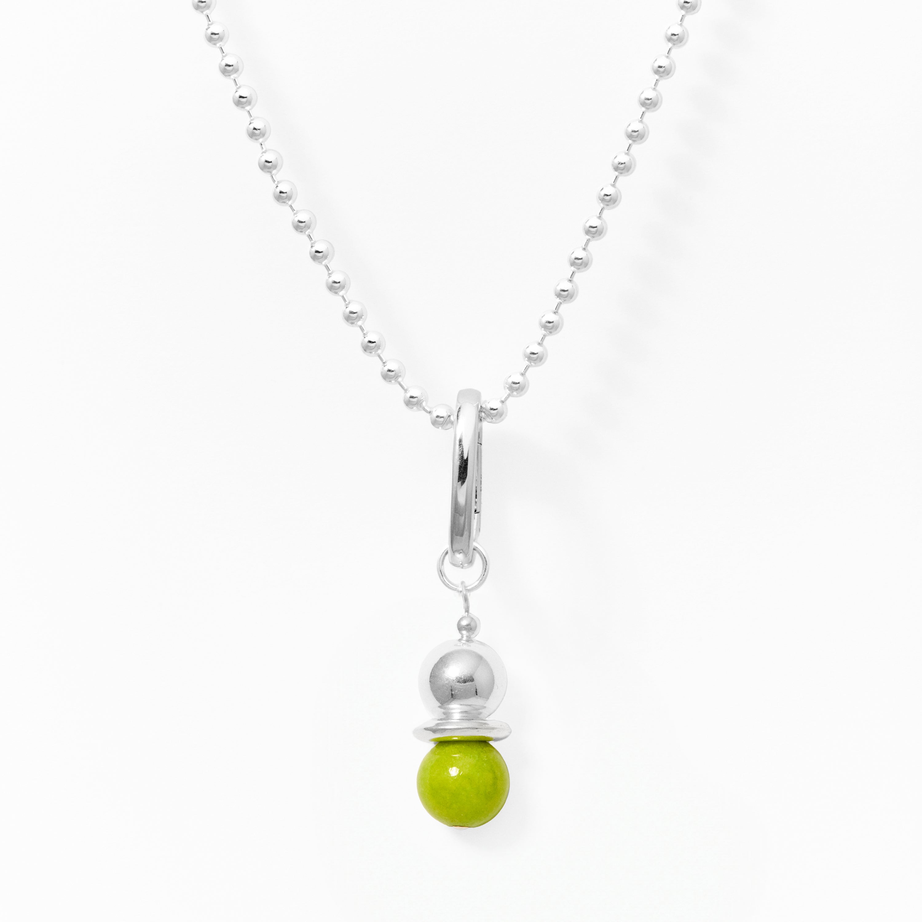 A burst of colour, a touch of silver, and all the charm. This playful piece features a Juicy Charm—your choice of gemstone, sterling silver sphere, and disc—on our signature Italian-made bead chain in 16" length.